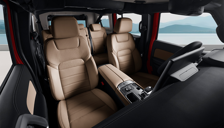 舒享越野包:前排&二排座椅通风+按摩、主驾座椅腿托、前排航空头枕、电动上车踏板(带防夹)、挡泥板。